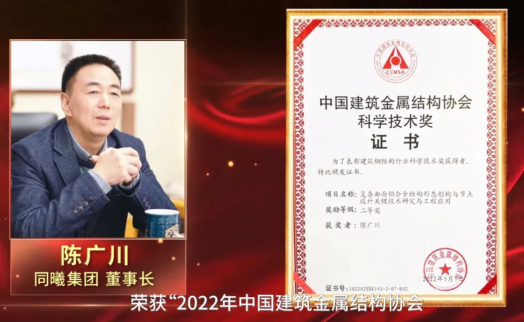 2022年12月,同曦集团荣获“CIAA建设·功勋企业奖”,陈广川荣获“CIAA建设·杰出贡献奖”。