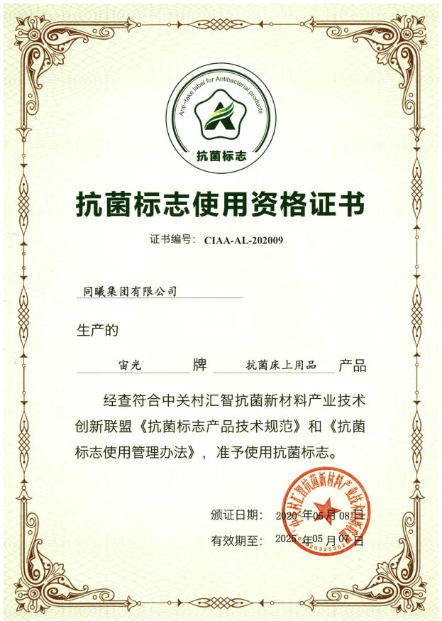 2019年10月,同曦集团荣获“抗菌制品创新力企业”称号。