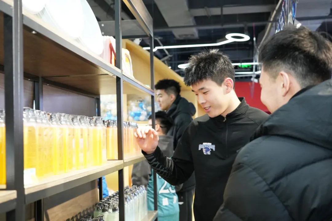 同曦男篮球员在宙光家庭与儿童抗菌产品馆参观选品
