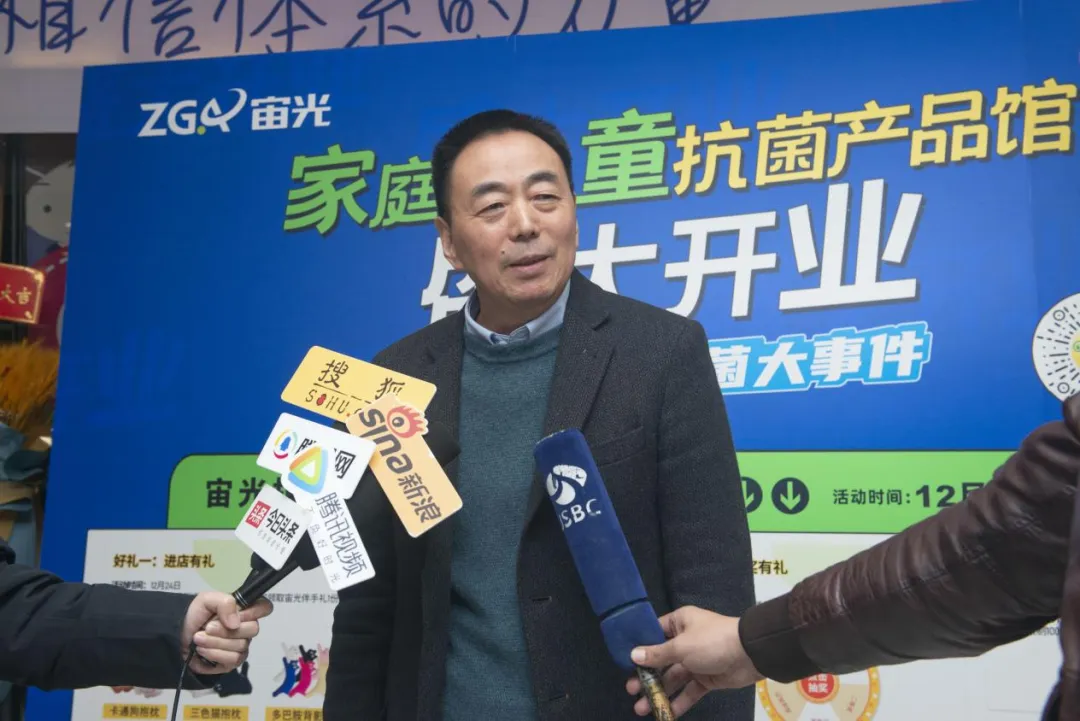 2023年12月陈广川出席宙光家庭与儿童抗菌馆开业仪式并接受媒体采访