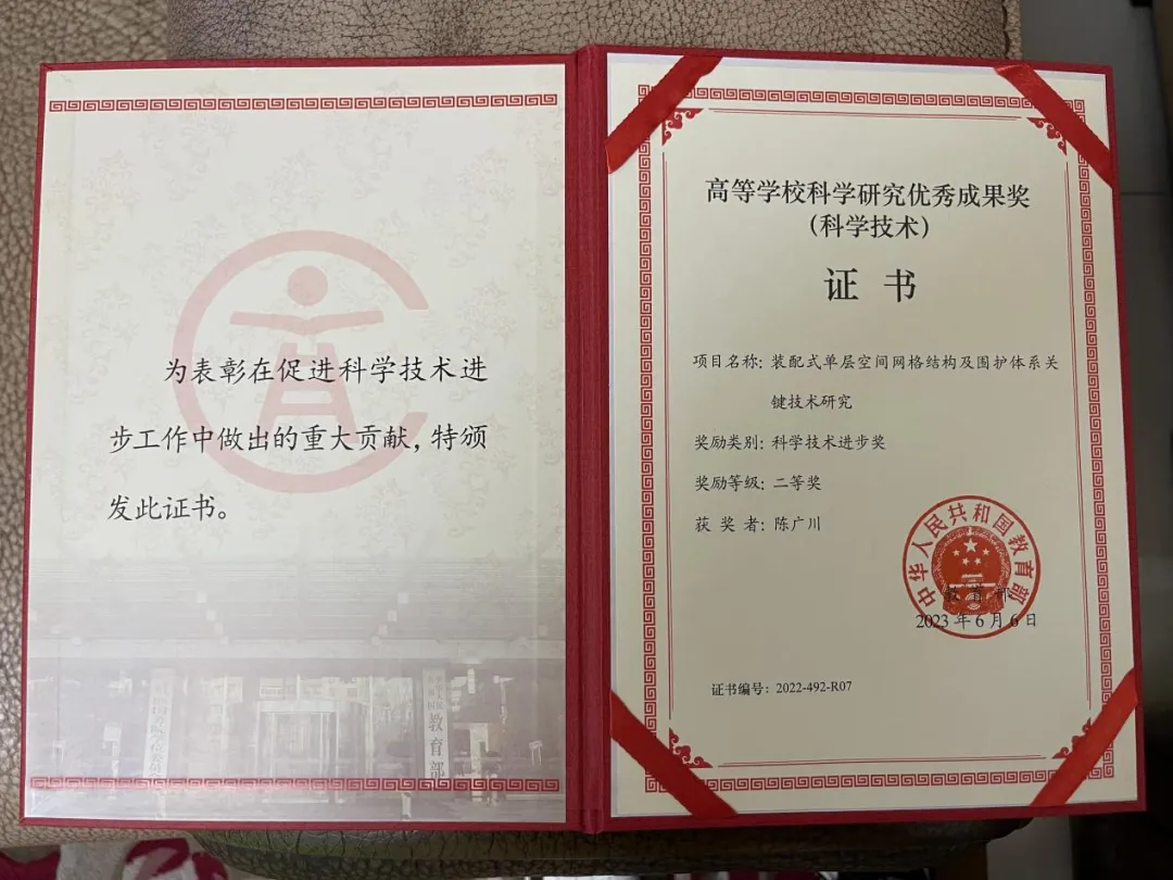 陈广川荣获2022年“中国建筑金属结构协会科学技术奖”