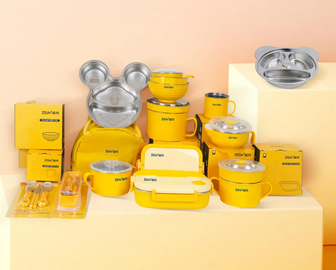 通过以上技术,宙光将抗菌抗病毒不锈钢产品延伸到了人们饮食起居的方方面面。例如,宙光不锈钢儿童餐具、不锈钢水杯,强度高,使用寿命比塑料的长,污渍不会在其表面吸附,霉菌无滋生地,杀菌抗菌抗病毒(平均抗菌率>99.9%,抗病毒活性率>99%),能够严防“病从口入”,有效呵护儿童健康。