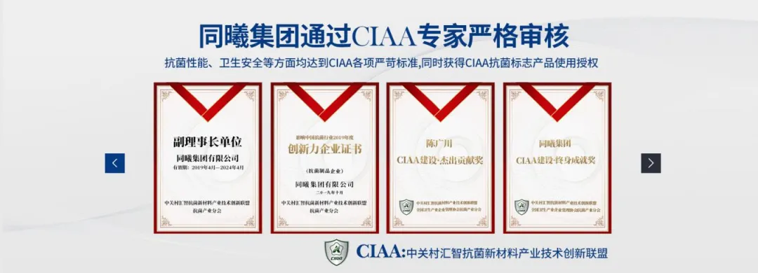 2023年,同曦•宙光相关产品成为CIAA抗菌标志产品。