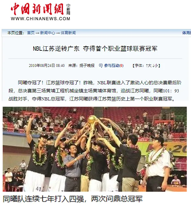 2010年8月媒体报道同曦男篮NBL夺冠