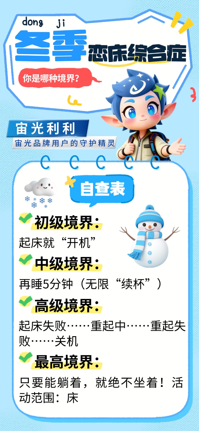 最近天气越来越冷,宙光利利患上了一种叫做“冬季恋床综合症”的“毛病”,一到冬天就加重。利利冬天的梦想是:和我的床呆在一起。如果非要给它加上一个期限的话,利利希望是:地老天荒。
