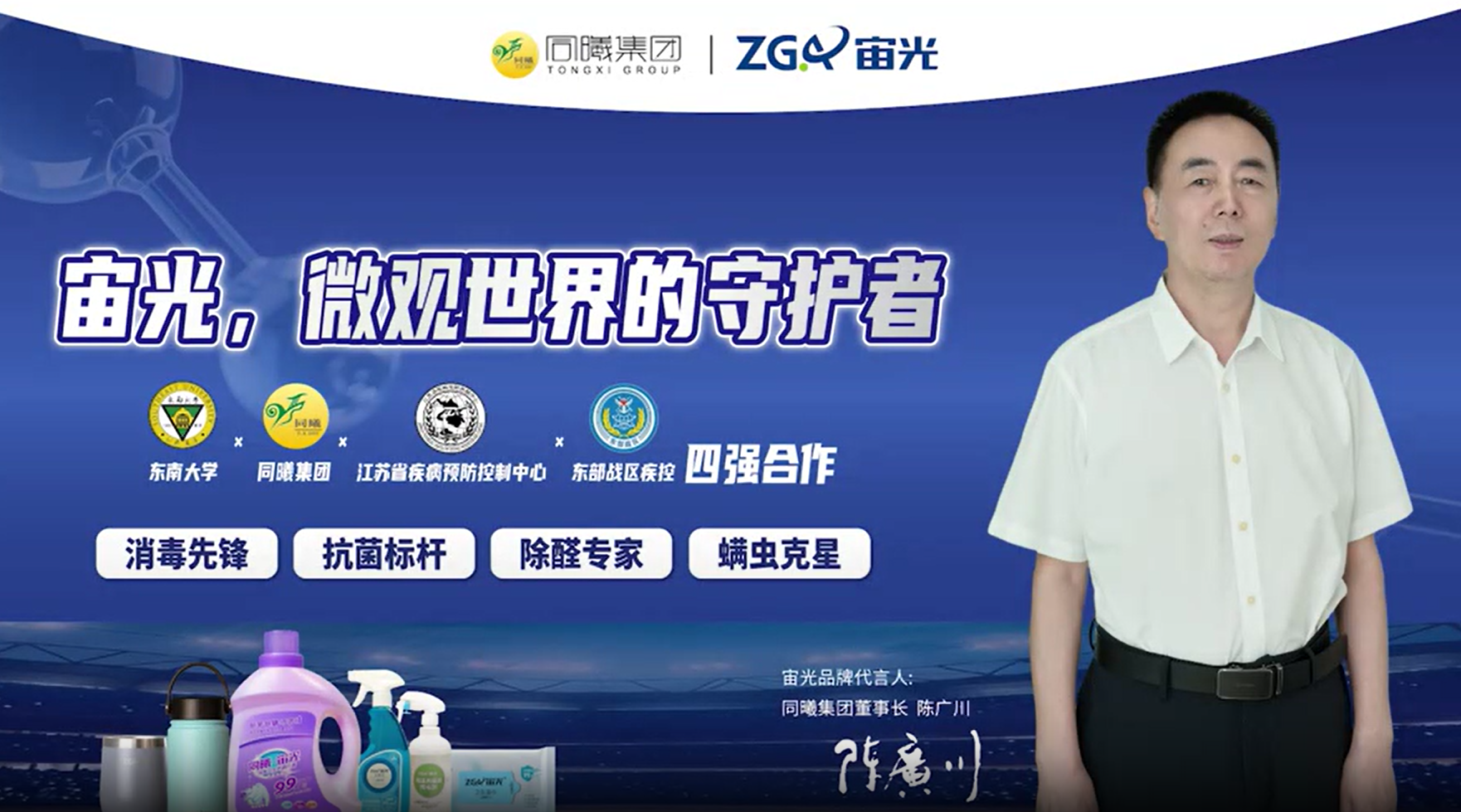宙光技术由同曦集团与东南大学联合研发,南京同曦篮球队为宙光品牌代言。同时,宙光品牌与江苏省疾控中心、东部战区疾控中心、江苏省人民医院等单位都有合作。近期,同曦集团与戎信控股正式签约,双方在抗菌抗病毒科技领域达成战略合作。