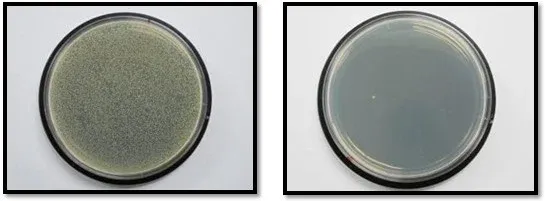 如图3所示,从未经处理的塑料中回收了大量细菌(图3左图)。相比之下,从添加抗菌剂的塑料中回收的细菌数量极少(图3右图)。