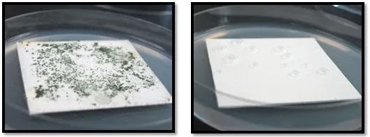 图 1:未经处理的 PVC(左)和经抗菌处理的 PVC(右),采用 ASTM G21 2标准进行测试