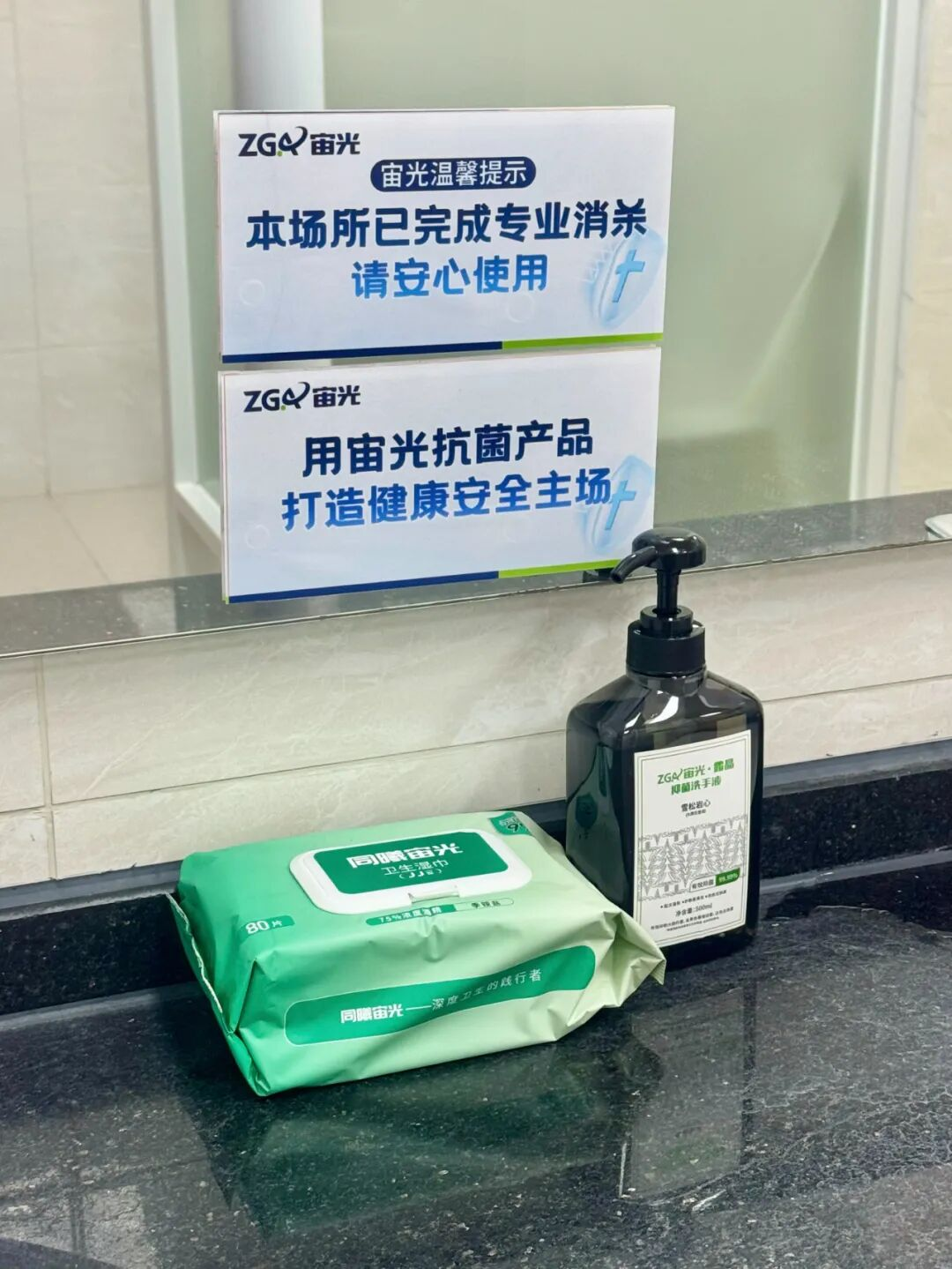 除了必不可少的卫生间消杀,观赛期间,宙光品牌还为球员和球迷朋友们提供除菌洗手液供大家使用,配合宙光品牌的消毒湿巾,为大家构建一道坚实的健康防护屏障。
