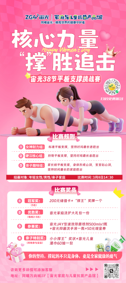 带上你的TA,带上你的娃,一起来挑战核心力量,赢取健康好礼!我们不见不散!🙋♀️🙋♂️👶